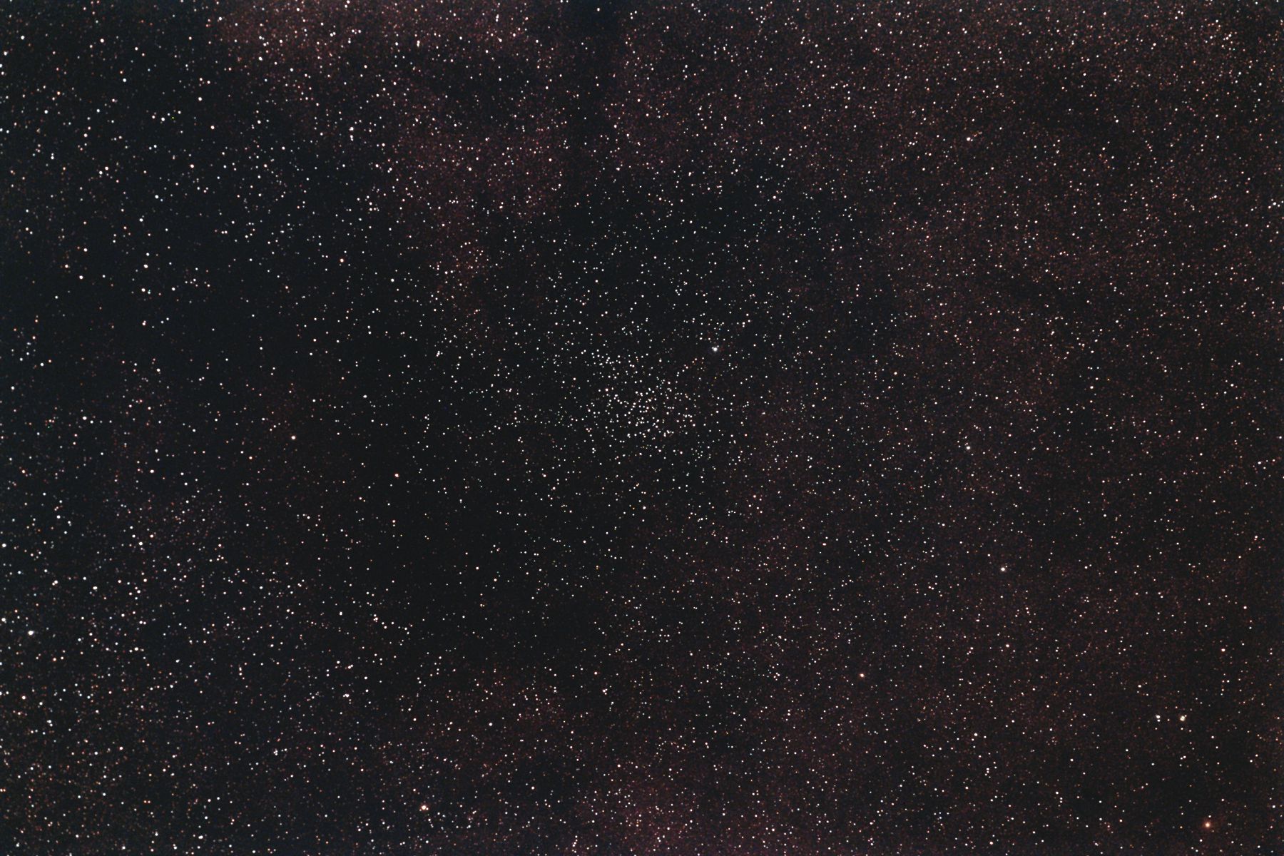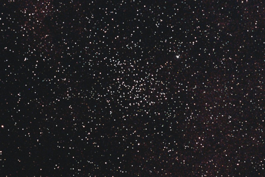 | 撮影メモ | いて座の散開星団M23周辺をOrionの80mm屈折を使ってフルサイズで撮影しました。 M23はいて座の天の川の中にあり、微恒星が多い散開星団です。 2枚目は1枚目の原版を約44%にリサイズしてM23の中心部分をトリミングしたものです。 (1枚目の視野角は256'x171') 原版の約1/3の大きい画像はこちらです。(Large size image is here) |