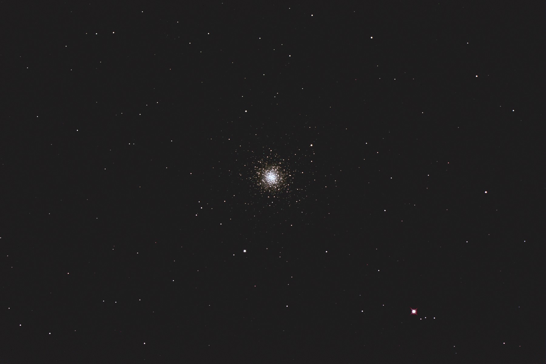 | 撮影メモ | りょうけん座にあるM3(NGC5272)をGS-200RCで撮影しました。 春の銀河群の中に浮かぶ、均整のとれた美しい球状星団です。 2枚目の画像は原版を約44%にリサイズして中心部分をトリミングしたものです。 (1枚目の視野角は75.8.'x.50.6') 原版の約1/3の大きい画像はこちらです。(Large size image is here) |