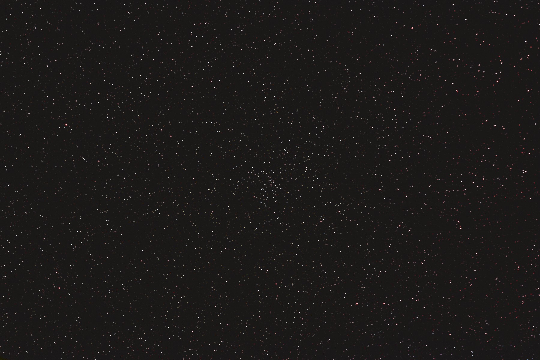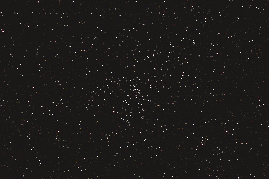 | 撮影メモ | うみへび座の散開星団M48周辺をOrionの80mm屈折を使ってフルサイズで撮影しました。 長いうみへびの頭の先(西側)に位置します。 2枚目は1枚目の原版を約44%にリサイズしてM48の中心部をトリミングしたものです。 (1枚目の視野角は256'x171') 原版の約1/3の大きい画像はこちらです。(Large size image is here) |