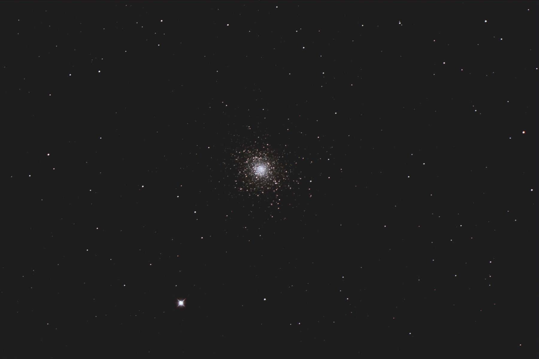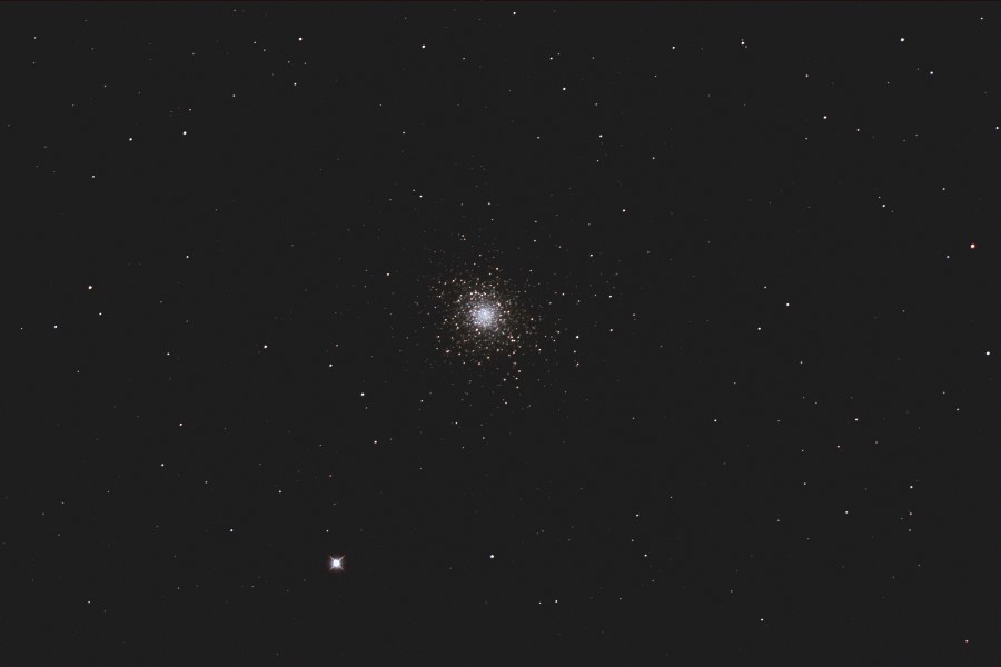 | 撮影メモ | へび座にあるM5(NGC5904)をGS-200RCで撮影しました。 密集度がややまばらな印象ですが、大きさ明るさとも立派な球状星団です。 2枚目の画像は原版を約44%にリサイズして中心部分をトリミングしたものです。 (1枚目の視野角は75.8.'x.50.6') 原版の約1/3の大きい画像はこちらです。(Large size image is here) |