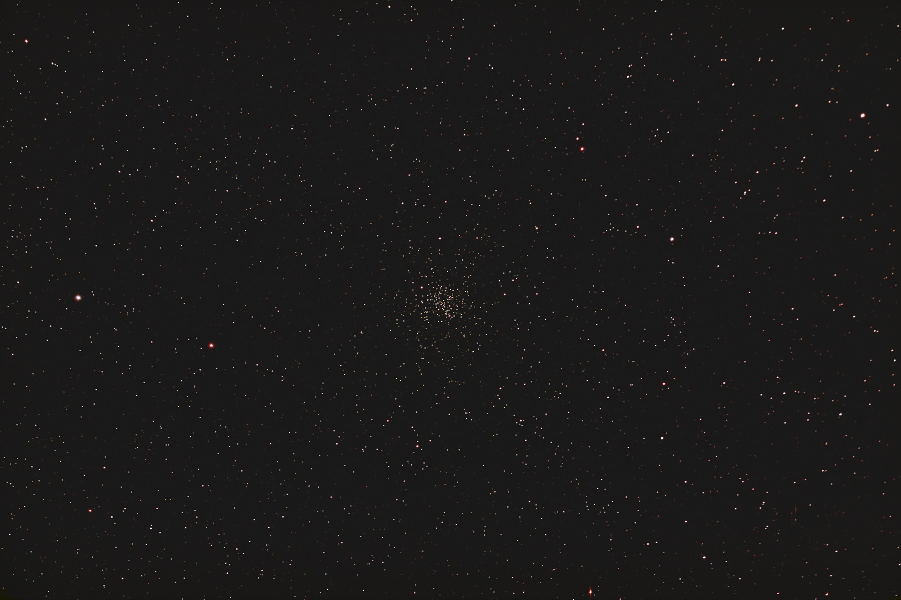 | 撮影メモ | かに座の散開星団M67周辺をOrionの80mm屈折を使ってフルサイズで撮影しました。 かに座にはM44プレセペ星団が有りますが、M67も均整が取れた美しい星団です。 2枚目は1枚目の原版を約44%にリサイズしてM67の中心部をトリミングしたものです。 (1枚目の視野角は256'x171') 原版の約1/3の大きい画像はこちらです。(Large size image is here) |