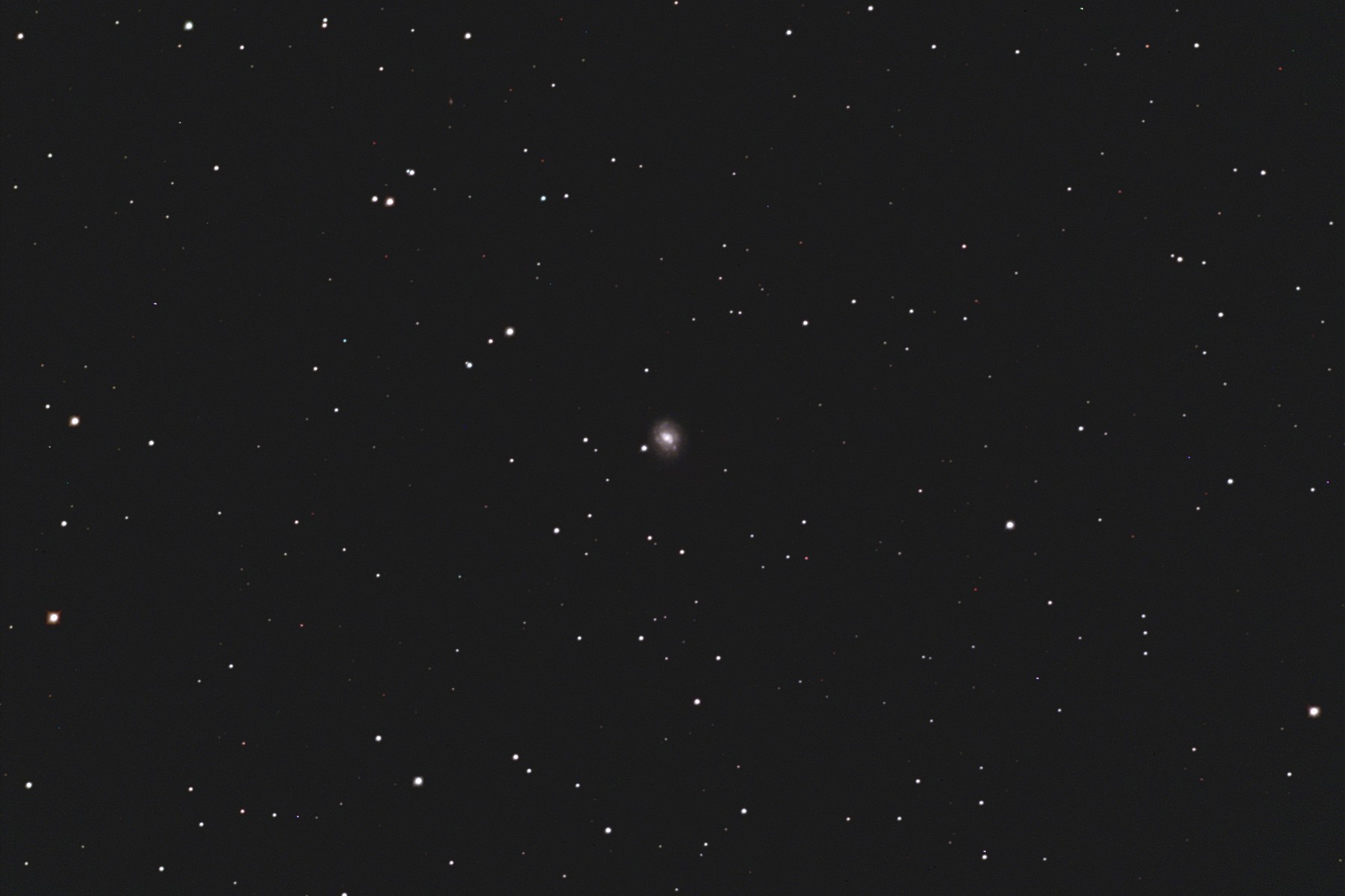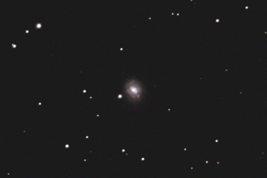 くじら座δ星のすぐ東にあるM77銀河をGS-200RCを使用してフルサイズで撮影しました。 中心部分は明るく良く写りますが、外周部の淡い腕はなかなか写ってくれません。 2枚目の画像は原版を1/2にリサイズして中心部分をトリミングしたものです。 (1枚目の視野角は75.8.'x.50.6') 原版の約1/3の大きい画像はこちらです。(Large size image is here) |