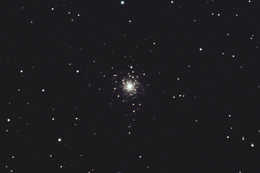 | 撮影メモ | うさぎ座にあるM79(NGC1904)をGS-200RCで撮影しました。 本来冬の星団なのですが、夏の明け方に撮影しました。 銀河の中心とは反対方向の冬の星座の中にぽつんと一つだけ存在します。 小さいですが中心部が明るく、かわいらしい印象の球状星団です。 高度が20度以下と低かったのですが、どうにか撮影出来ました。 2枚目の画像は原版を約44%にリサイズして中心部分をトリミングしたものです。 (1枚目の視野角は75.8.'x.50.6') 原版の約1/3の大きい画像はこちらです。(Large size image is here) |