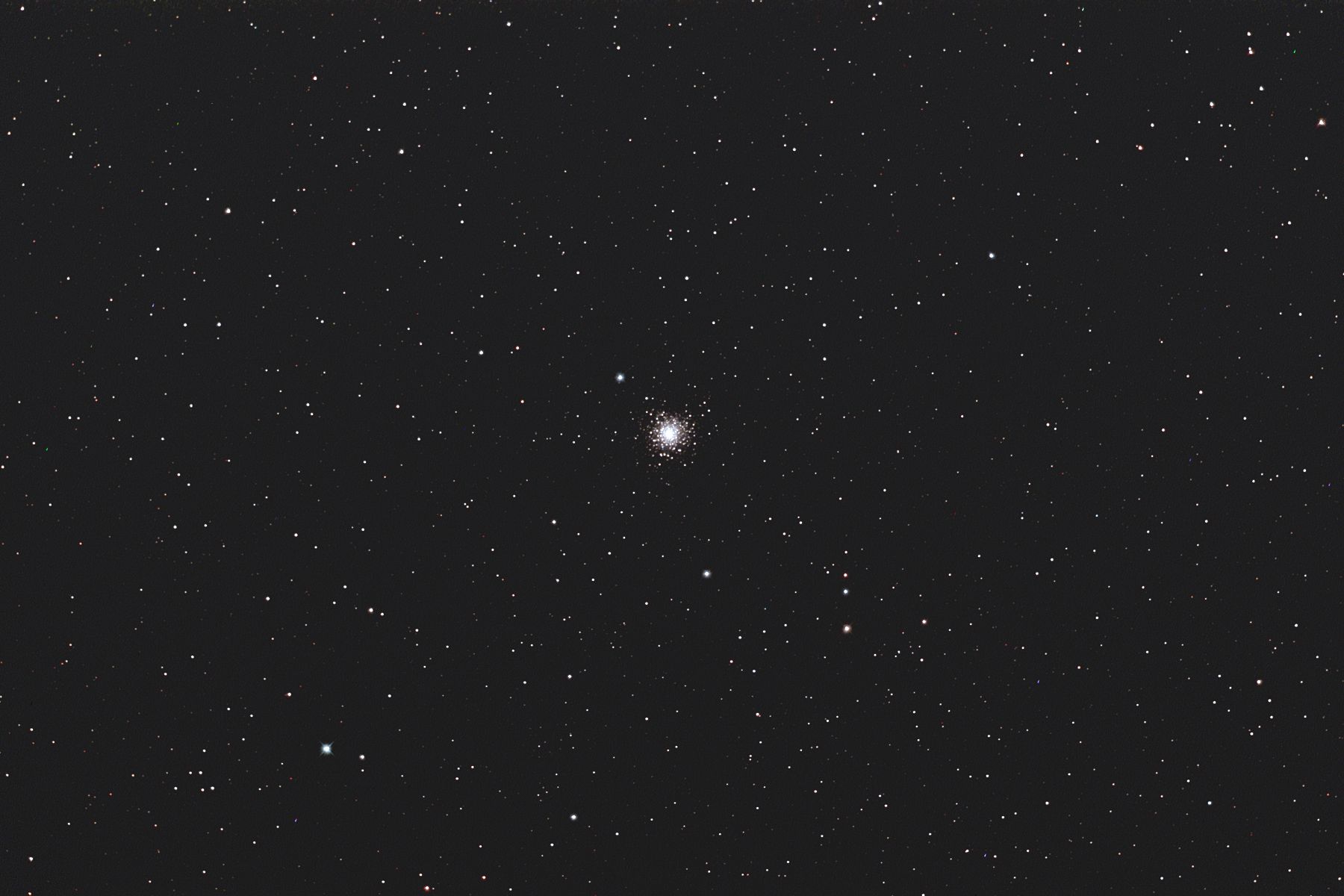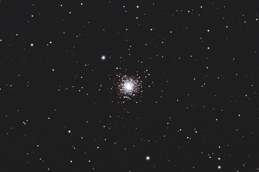 | 撮影メモ | さそり座にあるM80(NGC6093)をGS-200RCで撮影しました。 アンタレスのすぐ北西に位置し、密集度が高くII型に分類されています。 やや小さめながらコンパクトな印象を受けます。 2枚目の画像は原版を約44%にリサイズして中心部分をトリミングしたものです。 (1枚目の視野角は75.8.'x.50.6') 原版の約1/3の大きい画像はこちらです。(Large size image is here) |