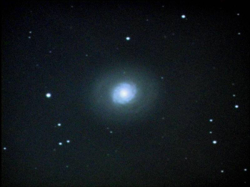 りょうけん座のα星とβ星の中間あたりにあり、ほぼ円形をした渦巻き銀河ですが、銀河の中心部が白く飛んでしまわないので渦巻きが3重構造になっているのがよくわかります。 青白く輝く中間帯の渦巻きが大変美しい銀河です。 |