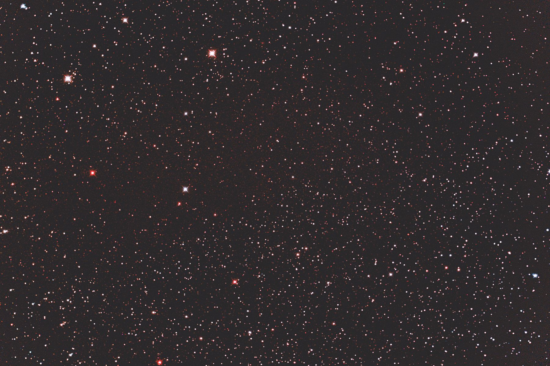 | 撮影メモ | ぎょしゃ座のSh2-218をGS-200RCとEOS 6Dを使用して撮影しました。 画像中央部から左端にかけて流れる様に赤黒っぽく見えるのがSh2-218です。 明らかに周囲と違う色合いです。 (視野角は94.7'x63.2') 原版の約1/3の大きい画像はこちらです。(Large size image is here) |