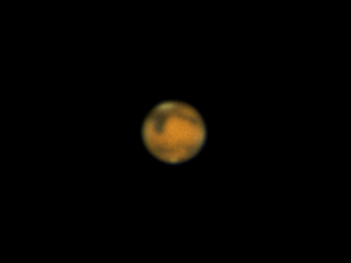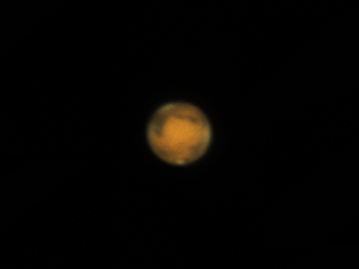 地球最接近の日を迎えた火星です。満月近い月と並んでいました。シーイングは結構安定していました。北極冠周辺の様子が分かります。