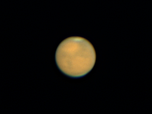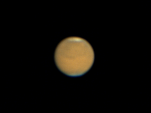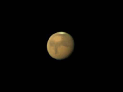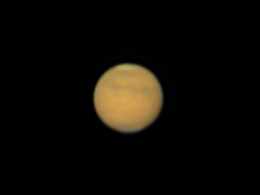 この日は雲が多くシーイングも良く有りませんでしたが、ラストチャンスと思い撮影してみました。南極冠と大シルチスが見えています。