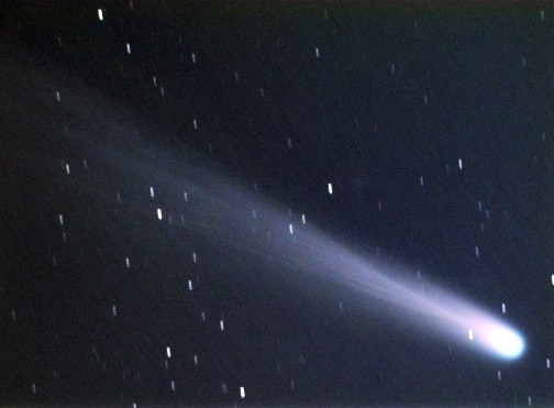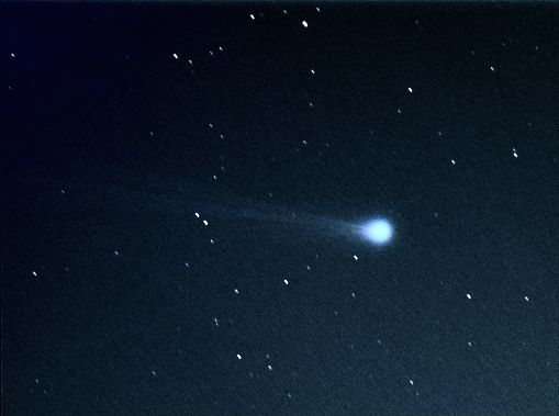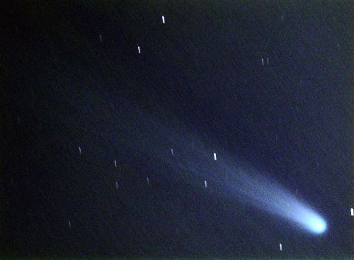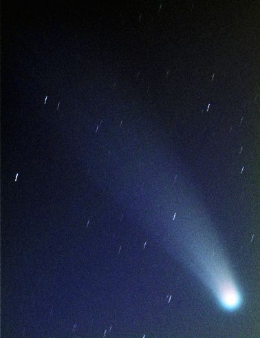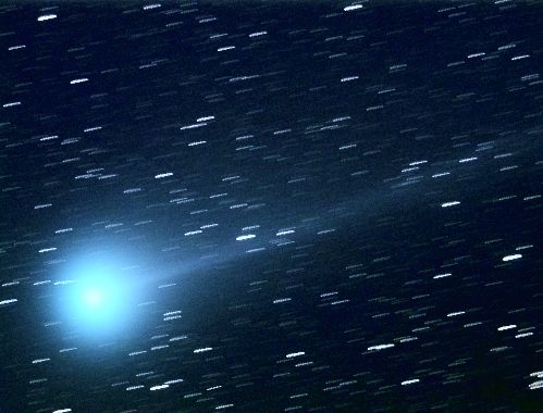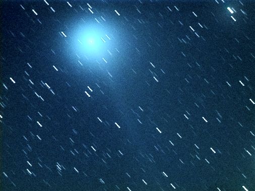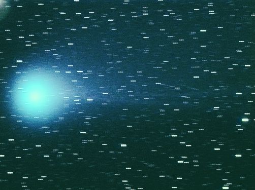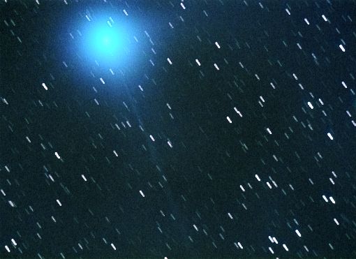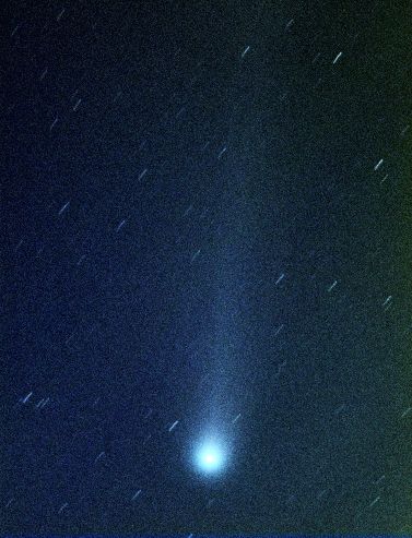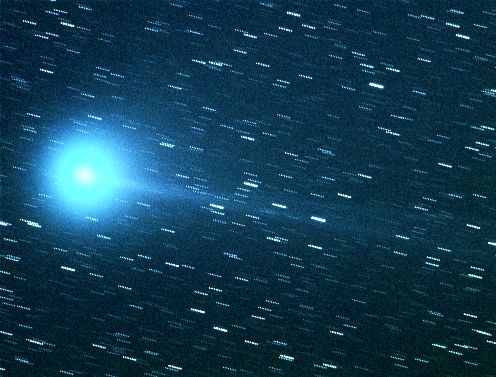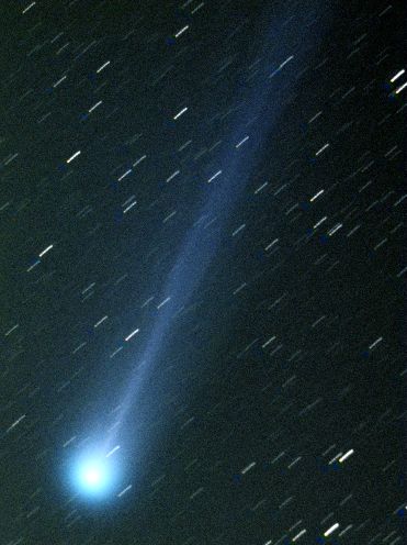 | 撮影メモ | 2002年春の夜空を飾った池谷・張彗星の変化をスライドショー(アニメーション)にしました。 彗星の尾の変化がよく分かるように全て同一光学系、同一縮尺、同一方角(上が北)に統一しました。 透明度・地上光の関係で画像が荒れているものもありますが、約4.5ヶ月間のべ30日分の変化が分かります。 全ての画像をダウンロード後にPLAYボタンで開始。STOPボタンで一時停止します。 発見された2月はくじら座でしたが、3月18日にうお座で近日点を通過し、その後アンドロメダ座、カシオペア座、ケフェウス座を通り4/下旬にはりゅう座に到達しました。 このころ地球に最も接近し、そしてヘルクレス座、かんむり座、へび座、てんびん座と移動し太陽系の彼方へと去りつつあります。 めまぐるしく尾を変化させながら宇宙空間を疾走する姿は素晴らしいの一語でした。 |