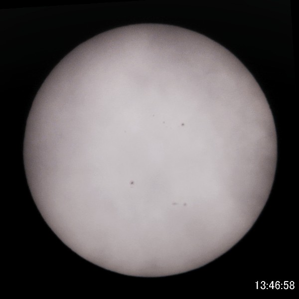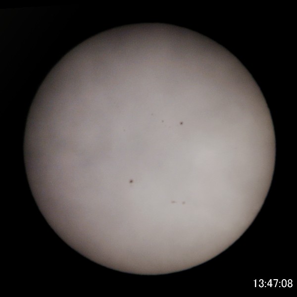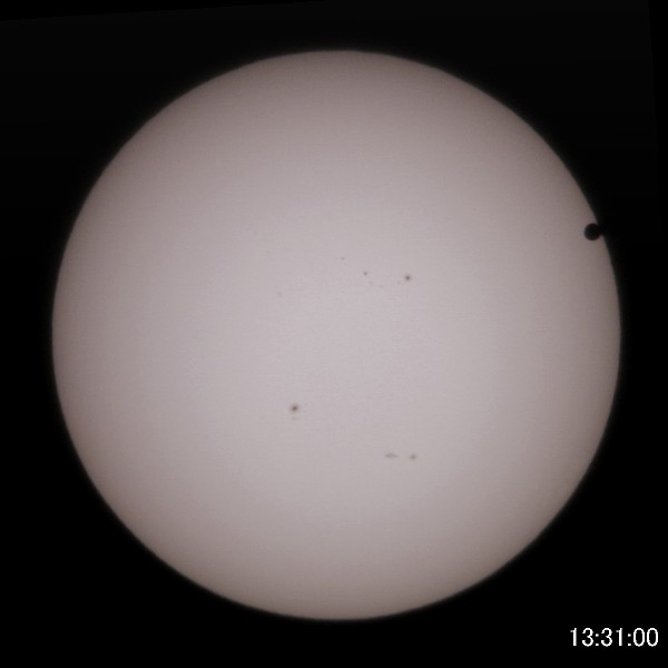 BORG 76ED(7.6cm屈折fl500mm) PL25mmにて拡大撮影(コリメート方式)+マルミDHG ND-100000 77mm ニコンデジタルカメラCOOLPIX E950 望遠側(35mm判換算115mm) XGA、FINE ホワイトバランス:曇天、中央重点測光 ステライメージ4にて画像処理 個別画像はこちらです。 全ての画像をダウンロード後にPLAYボタンで開始。STOPボタンで一時停止。 |