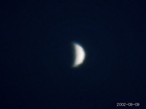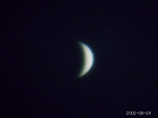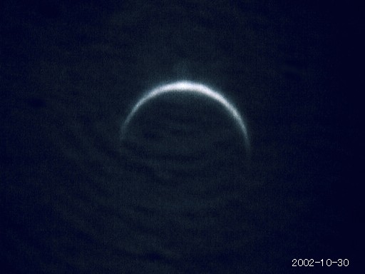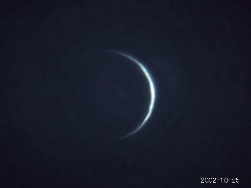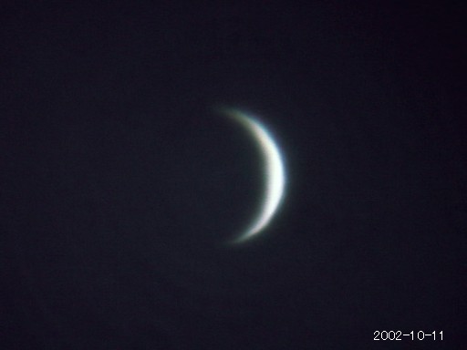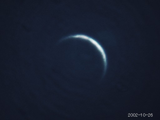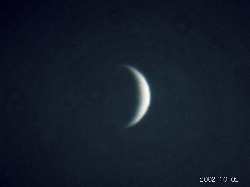 | 撮影メモ | 2002年の金星の満ち欠けを東方最大離角から内合までスライドショーにしました。 拡大倍率は同一ですが方角は正確には統一していません。 約2ヶ月間の間に半月状から次第に欠けていき、大きく弧を描くように細く大きくなっていく様子が分かります。 全ての画像をダウンロード後にPLAYボタンで開始。STOPボタンで一時停止します。 |