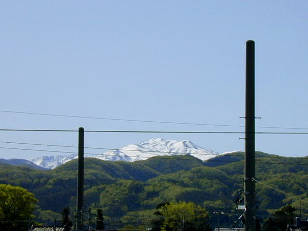 新緑の頃まだ真っ白に雪を頂いた白山が美しく遠望できます。白山がはっきりと見える日は透明度が高く、絶好の星見日和です。