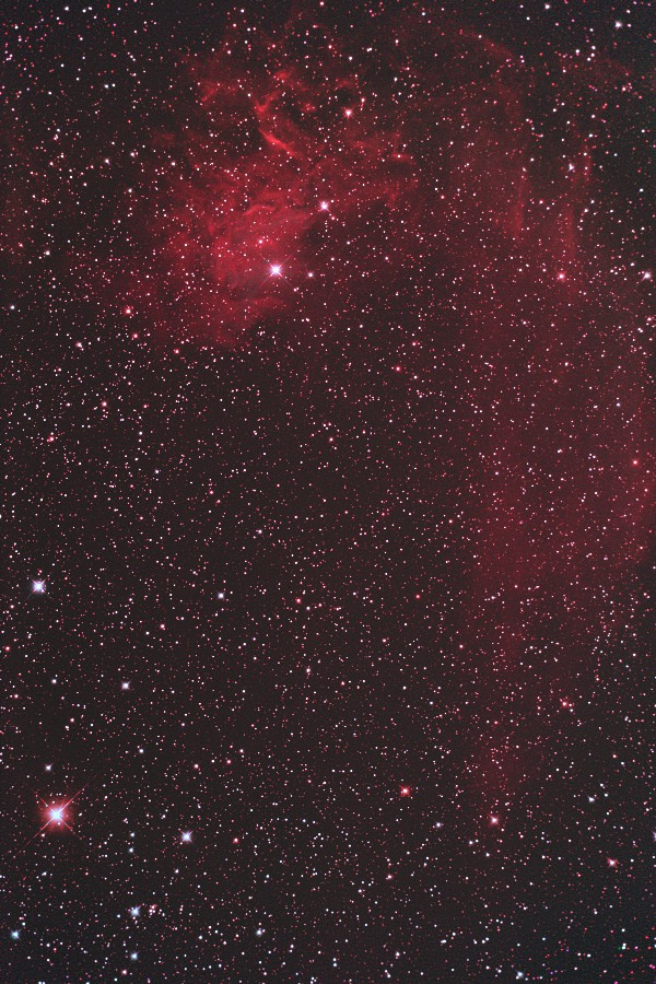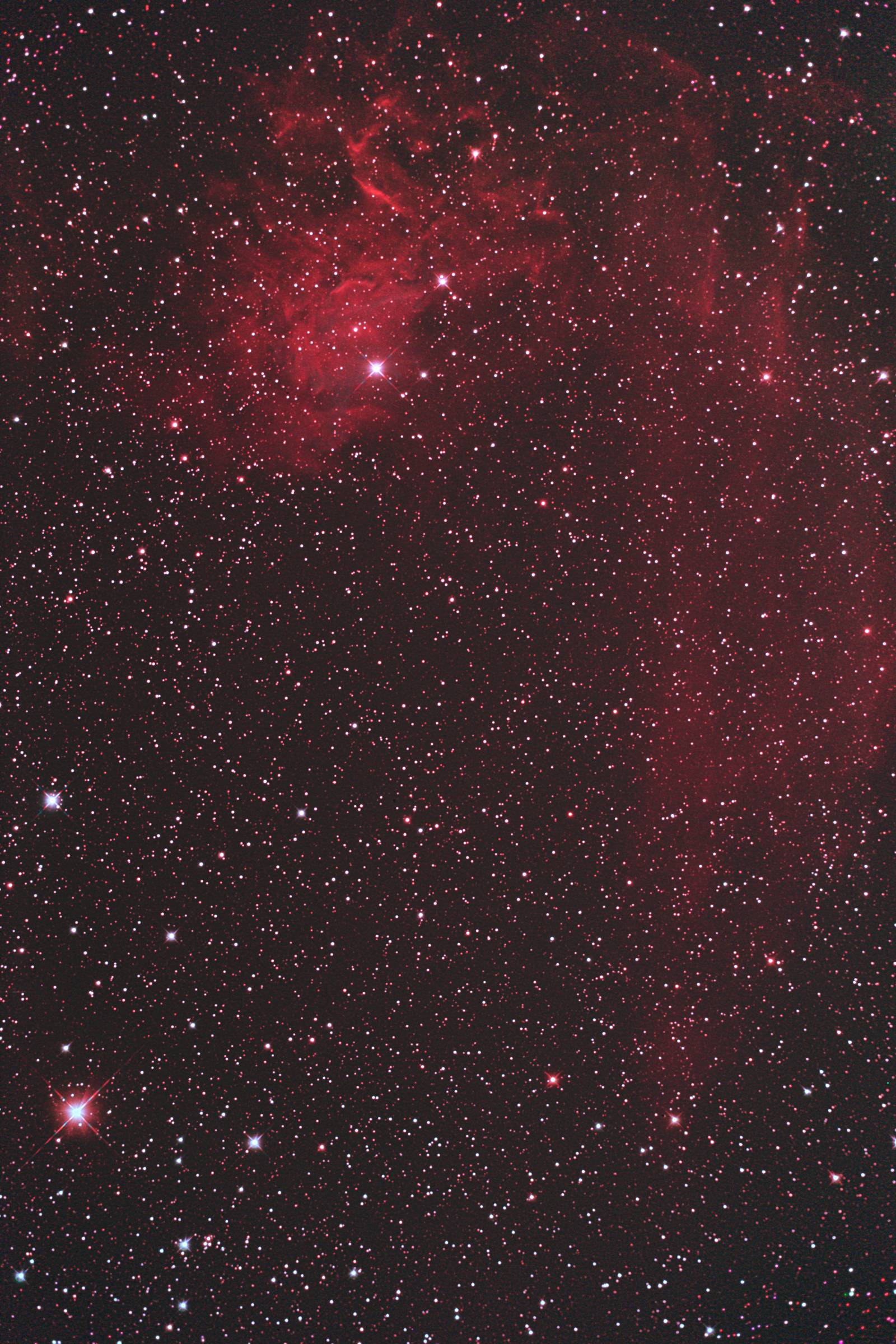 ぎょしゃ座のIC405散光星雲GS-200RCとEOS 6Dを使用して撮影しました。 フルサイズのおかげで星雲のほぼ全景が入りましたが、撮影時間が少し早かったこともあり写りはあまり良くありません。 四隅に星像改善処理を行いました。 (視野角は67.5'x101') 原版の約44%の大きい画像はこちらです。(Large size image is here) |