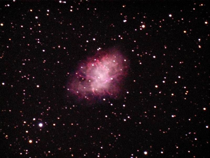 | 撮影メモ | 1054年の超新星の大爆発によって生じた星雲で、赤いフィラメント状の足が出ていることから、かに星雲と呼ばれています。 星雲外側に向かって無数の足が出ているのが分かります。 |