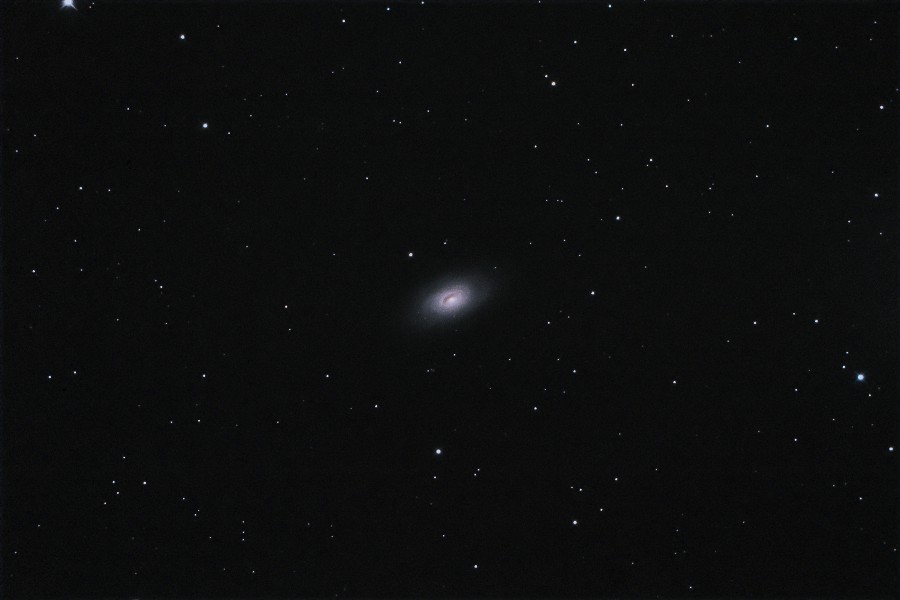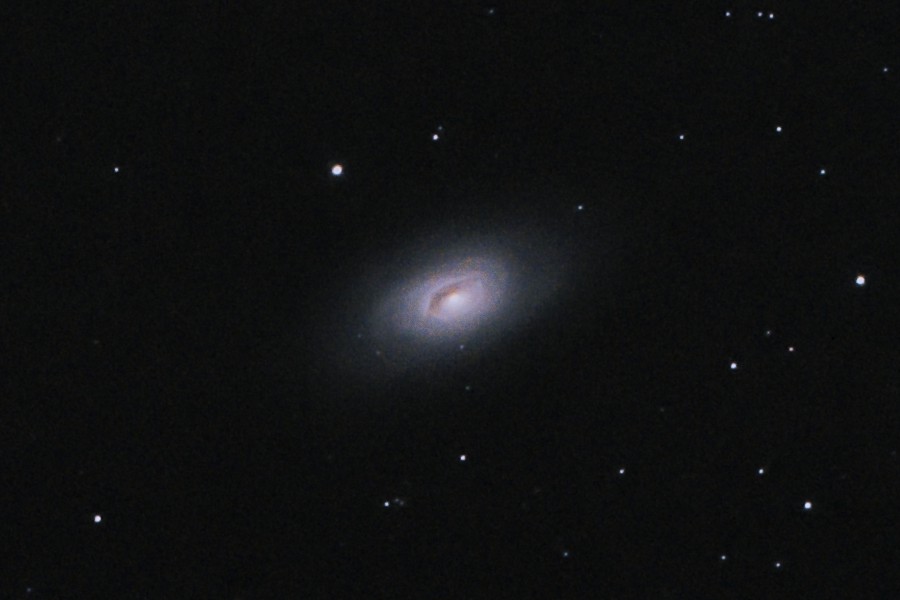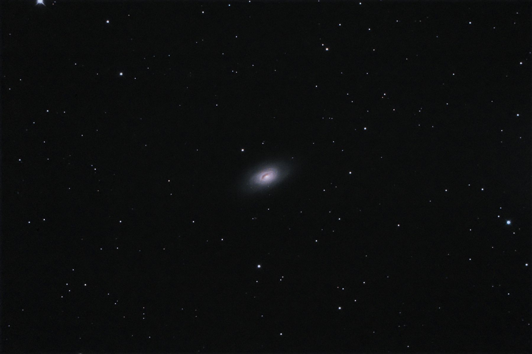 かみのけ座のM64銀河をGS-200RCを使用して撮影しました。 8枚コンポジットですが黒眼に当たる暗黒帯がよく分かります。 2枚目の画像は原版を1/2にリサイズして中心部分をトリミングしたものです。 (1枚目の視野角は62.9x42.1") 原版の約1/3の大きい画像はこちらです。(Large size image is here) |