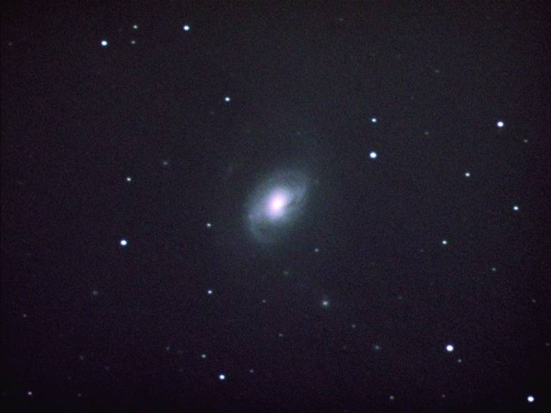 M95とペアになるしし座の銀河です。 撮影時間が多少早いのと、透明度がいまひとつなために十分なコントラストが得られていません。 こちらの銀河も外周部のおおきな腕がかすかながらわかる程度です。 |