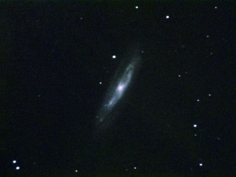 かみのけ座の銀河ですがかなり斜めからから見た渦巻き銀河です。 この銀河はおとめ座銀河団の中に見えますが、距離的にいっておとめ座銀河団には属していないそうです。 |