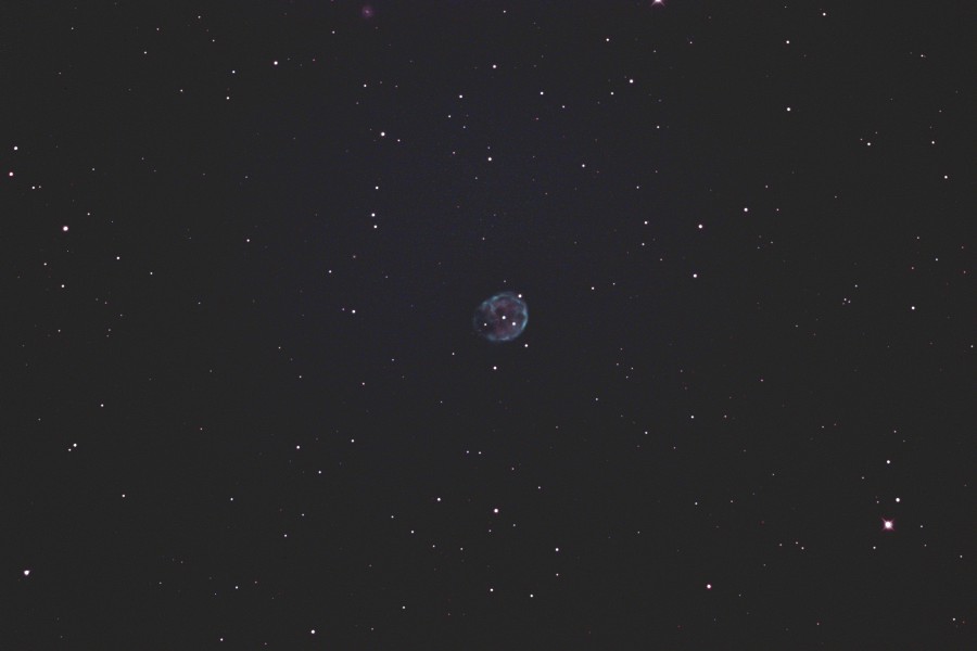 | 撮影メモ | くじら座のNGC246をGS-200RCとEOS 6Dにてフルサイズで撮影しました。 前回は同一光学系でOPTOLONG CLS-CCD Filterを使用しましたが、今回はサイトロンのDual BPフィルターを使用しました。 露出時間の違いはあるものの比較してみると一目瞭然ですが、Dual BPフィルターのほうがはるかに良く写っていて、星雲内側が赤くなっていることも分かります。 (1枚目の視野角は75.8.'x.50.6') 2枚目の画像は原版を50%にリサイズして中心部分をトリミングしたものです。 原版の約44%の大きい画像はこちらです。(Large size image is here) |