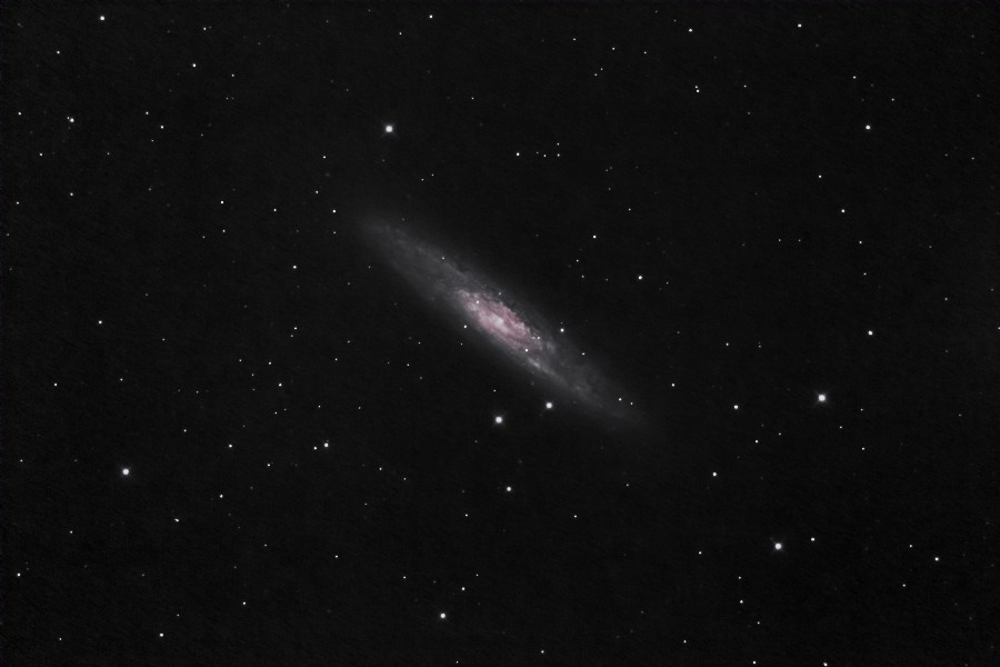 ちょうこくしつ座にある銀河NGC253をGS-200RCを使用して撮影しました。 10月に入り透明度が良かったので、低空でしたがわりと良く写りました。 (視野角は62.9'x42.1') 原版の約1/3の大きい画像はこちらです。(Large size image is here) |