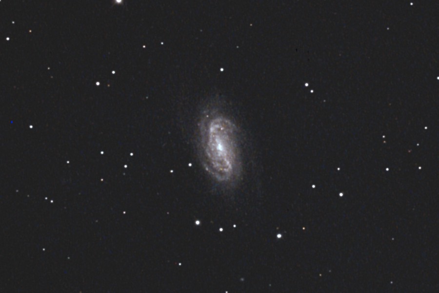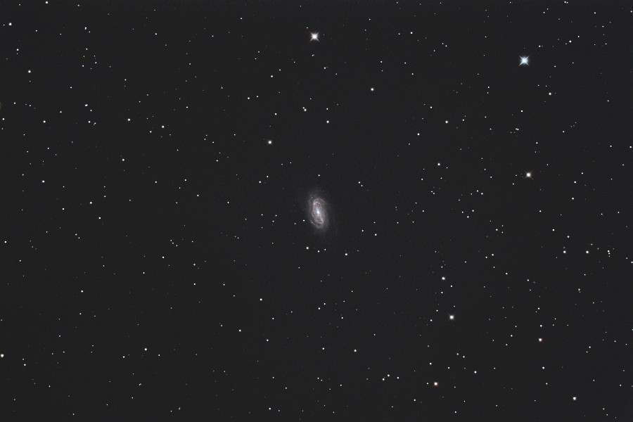 しし座にある渦巻き銀河NGC2903をGS-200RCを使用して撮影しました。 月齢4の月明かりの影響でやや画像が荒れましたが、銀河内部の構造が良く分かります。 2枚目の画像は原版を1/2にリサイズして中心部分をトリミングしたものです。 (1枚目の視野角は75.8.'x.50.6') 原版の約1/3の大きい画像はこちらです。(Large size image is here) |