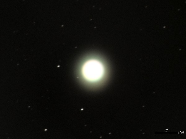 夜明け前に晴れていたので撮影してみました。コマはこの光学系の写野いっぱいまで広がっています。光度もほとんど落ちていないようです。