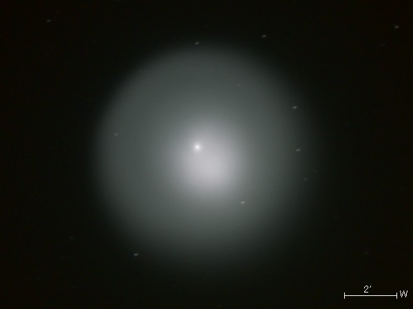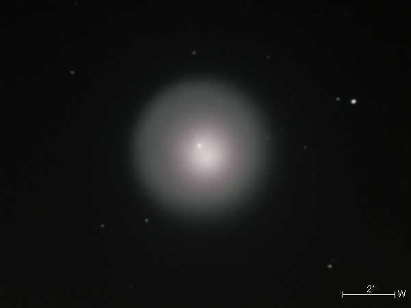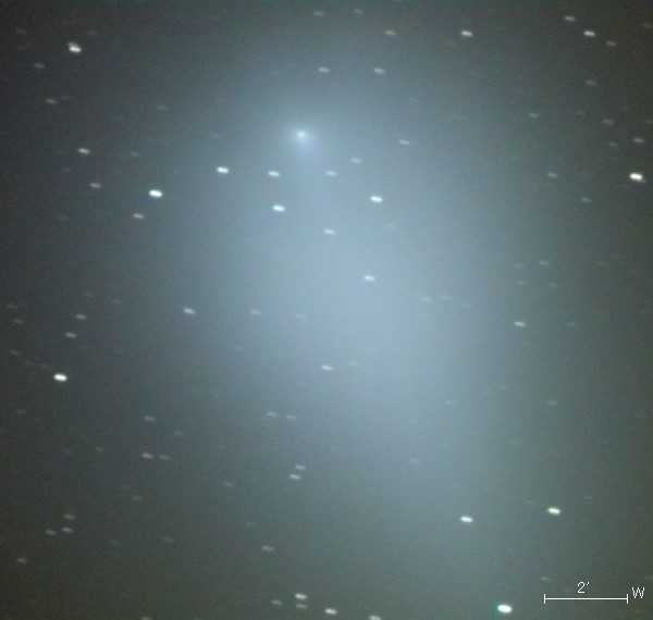コマは毎日みるみる拡散してもう15'近くになってきました。実際は遠ざかっているのに不思議な感じです。中心部分が青みを帯びてきたような気がします。またコマは南西方向が淡くなっています。