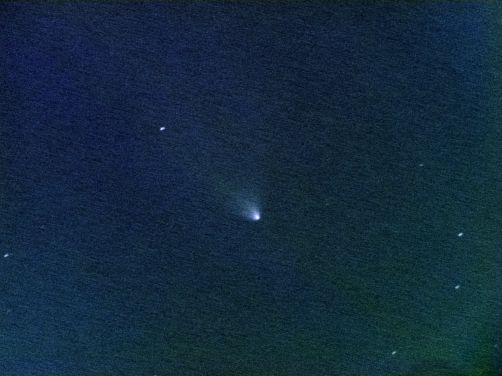 | 撮影メモ | おうし座を移動中の宇都宮彗星です。 4/28と比べると透明度の差もありますが、明らかに暗くなっているようです。 尾は北東方向と淡いですが北方向にも伸びています。 撮影時の高度は約11°〜8°で高度的には4/28日より良かったのですが、カラー画像のむらがかなり出てしまいました。当然のことながら高度が10°を切るとわずかの透明度の差で写りが大きく異なってしまいます。 視野の長辺は約1°、右画像はL画像のみを反転したものです。 |