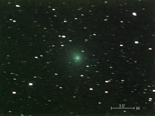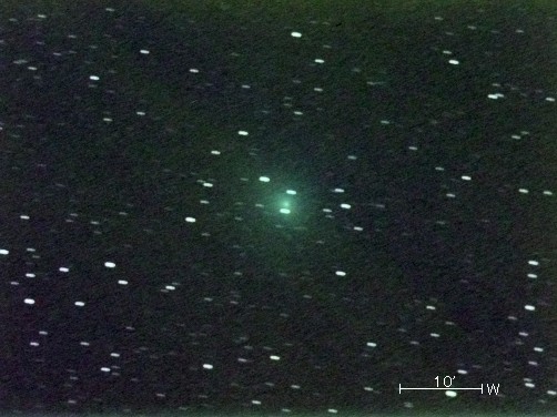 まだ尾は見えませんが、青緑色のコマが彗星らしい姿です。